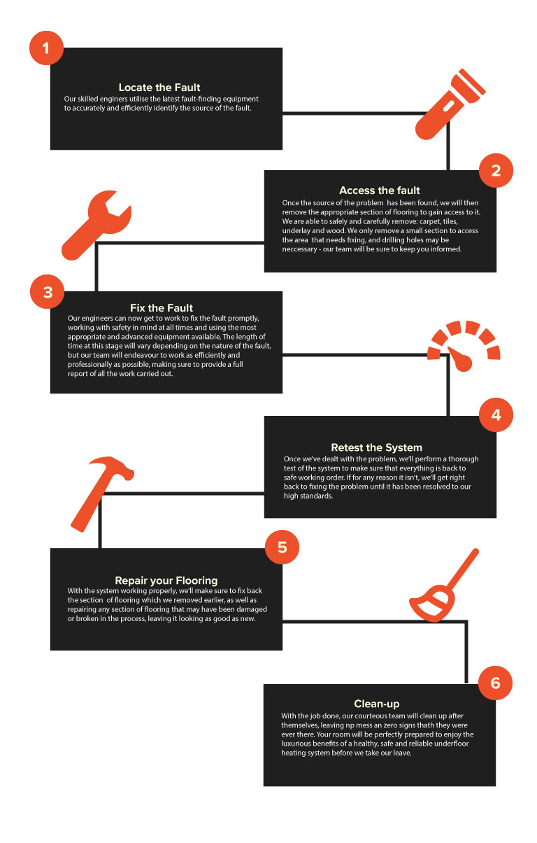 We always strive to work with the utmost care and the highest standards of customer service, so for an idea of what you can expect when you choose UFH Services, take a look at our step-by-step repair process: